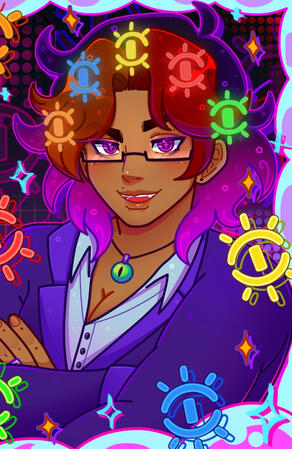 An interdimensional game show host, formerly on the run for an incident they were accused of masterminding. Fused with the souls of five presumed dead, the group fled in search of answers with a puffle by their side.Now adjusting to their new life and having gained a following for the show, it wasn't enough for the host. Using the game show as a red herring, they'd take over dimensions behind the scenes, infecting them with their own version of Uroboros and inevitably destroying them.It's all a front. All a distraction. And you're witnessing a new era of humanity by the hand of the Visionary.